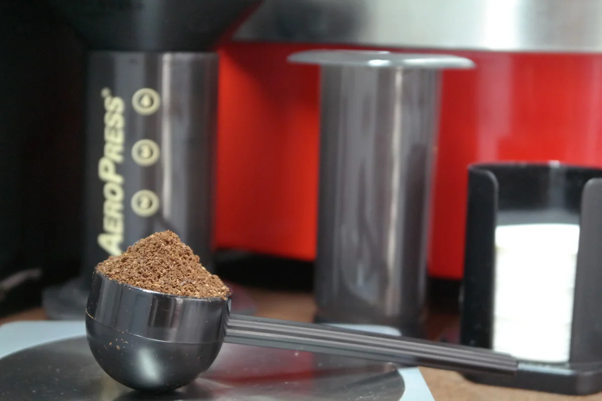 Grind 15g of beans (1 heaped spoonful) on a fine to medium setting.